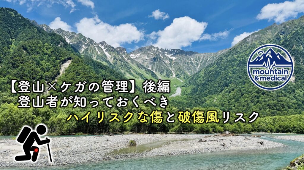 当サイトではアフィリエイトリンクを使用しています。 はじめに こんにちは!市川です!今日のテーマは「登山中のケガの管理(後編)」です。 前編では主に「山中での応急処置」についてお話ししました。 https://tozan-medical.com/wound_management_1/ 後... -