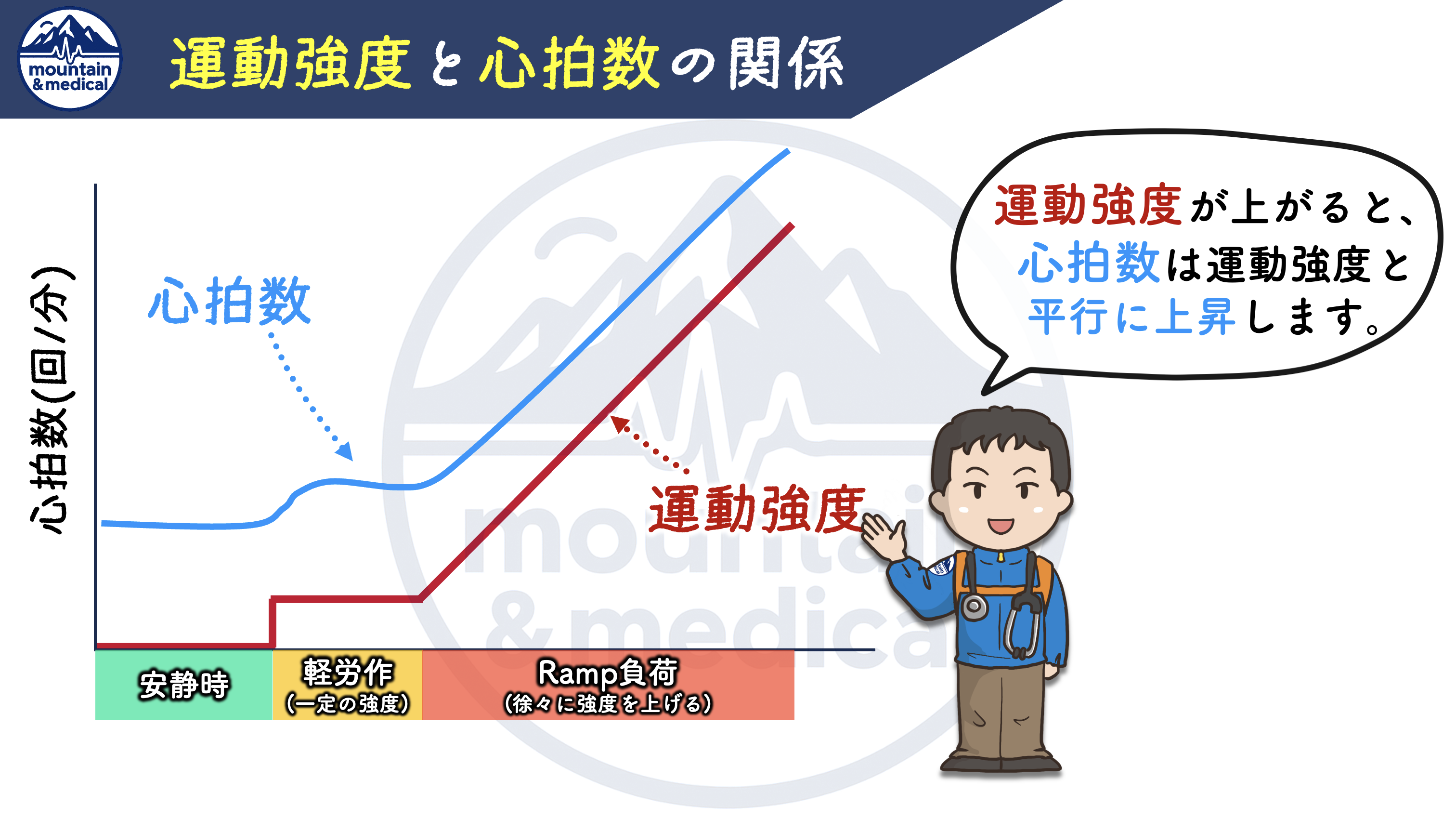 心拍数は運動強度に合わせて平行に増加するのが正常です。