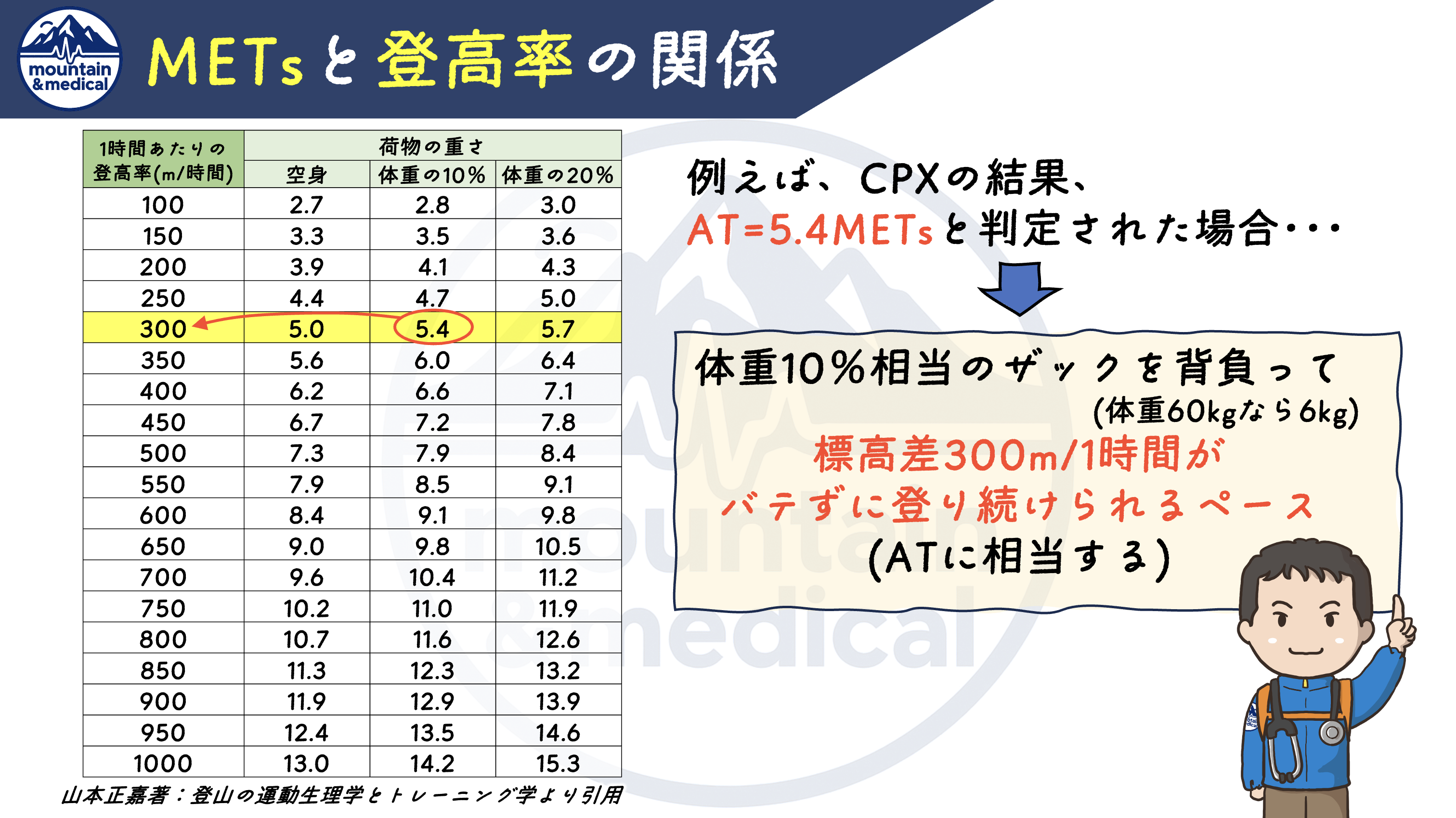 CPXを行うことで、以下のような形で「持続可能な登高ペースが具体的に数値化」できます。