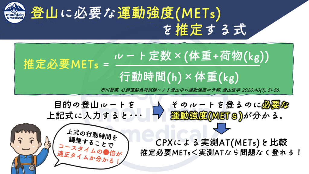 AT>推定必要METsとなり、ATの範囲内で安全に余裕を持って登山ができると推定できます。