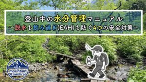 登山中には水分・電解質(主に塩分)を失っている状態のことが多いです。