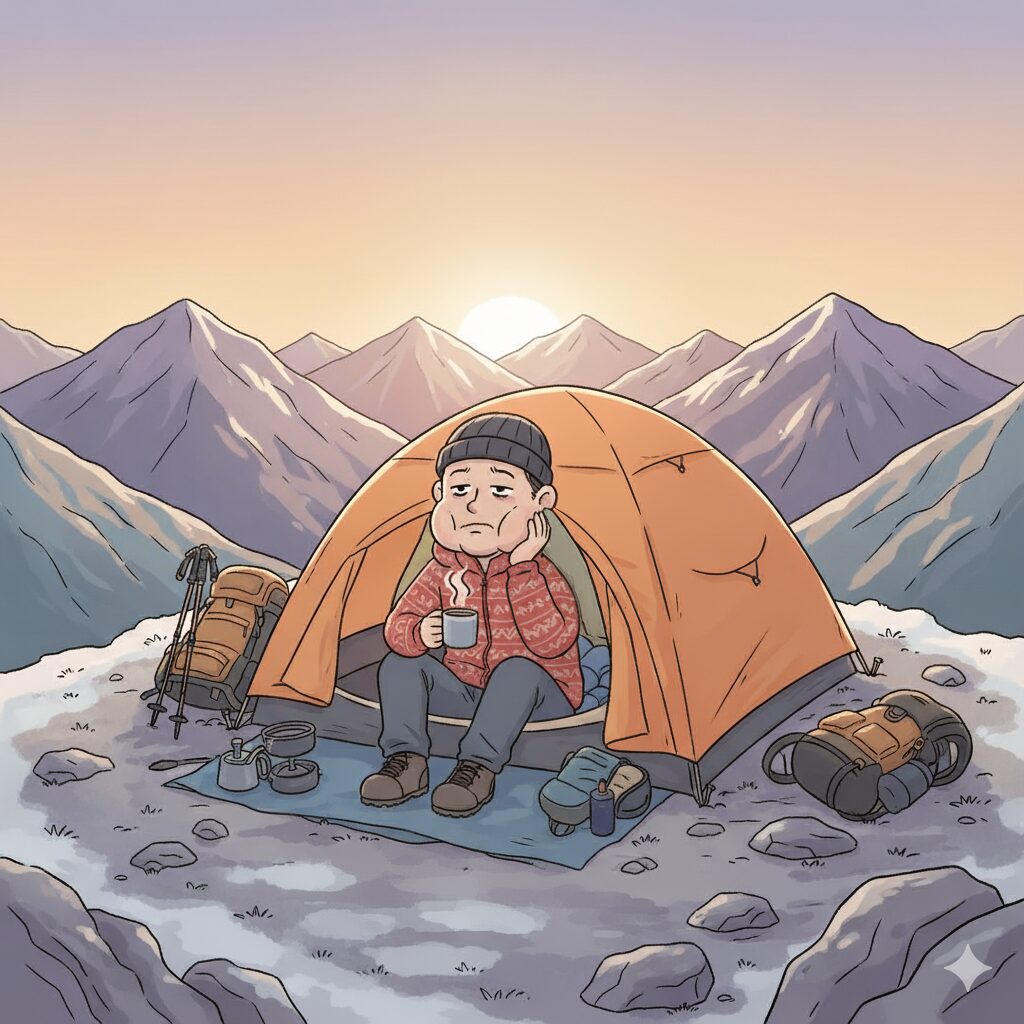 テントで寝た翌朝、違和感を感じてスマホを見ると顔がむくんでいる・・・。