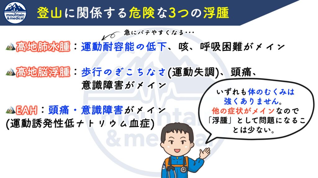 登山でのむくみの立ち位置はこんな感じでしょうか。