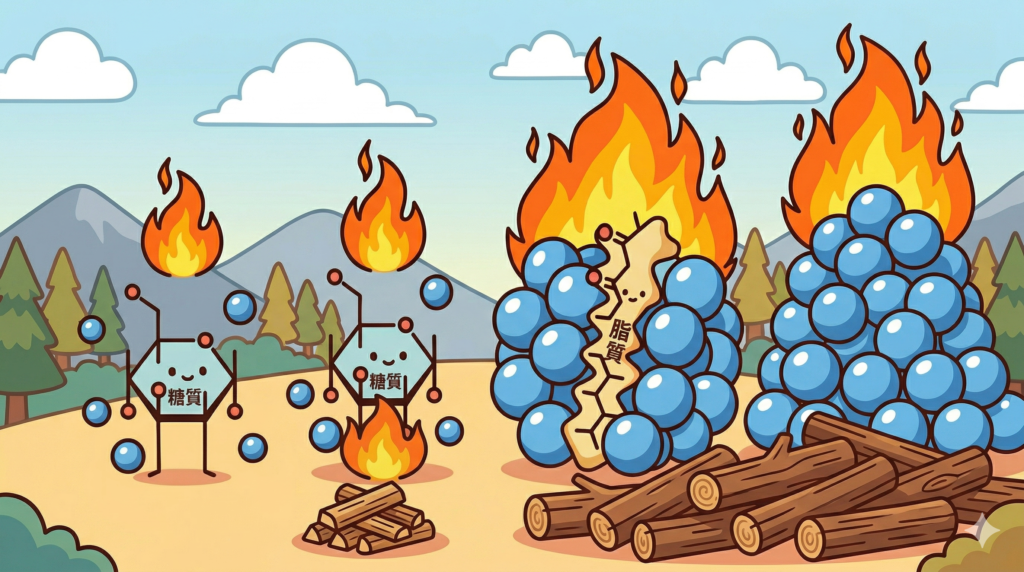 まずはこの2つの燃料の決定的な違いを理解することが、バテない体作りの第一歩です。