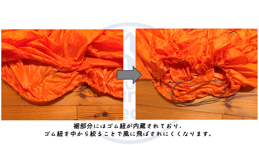 また、袋の裾部分にはゴム紐の絞りもついているため、風で吹き飛ばされにくくなっています。