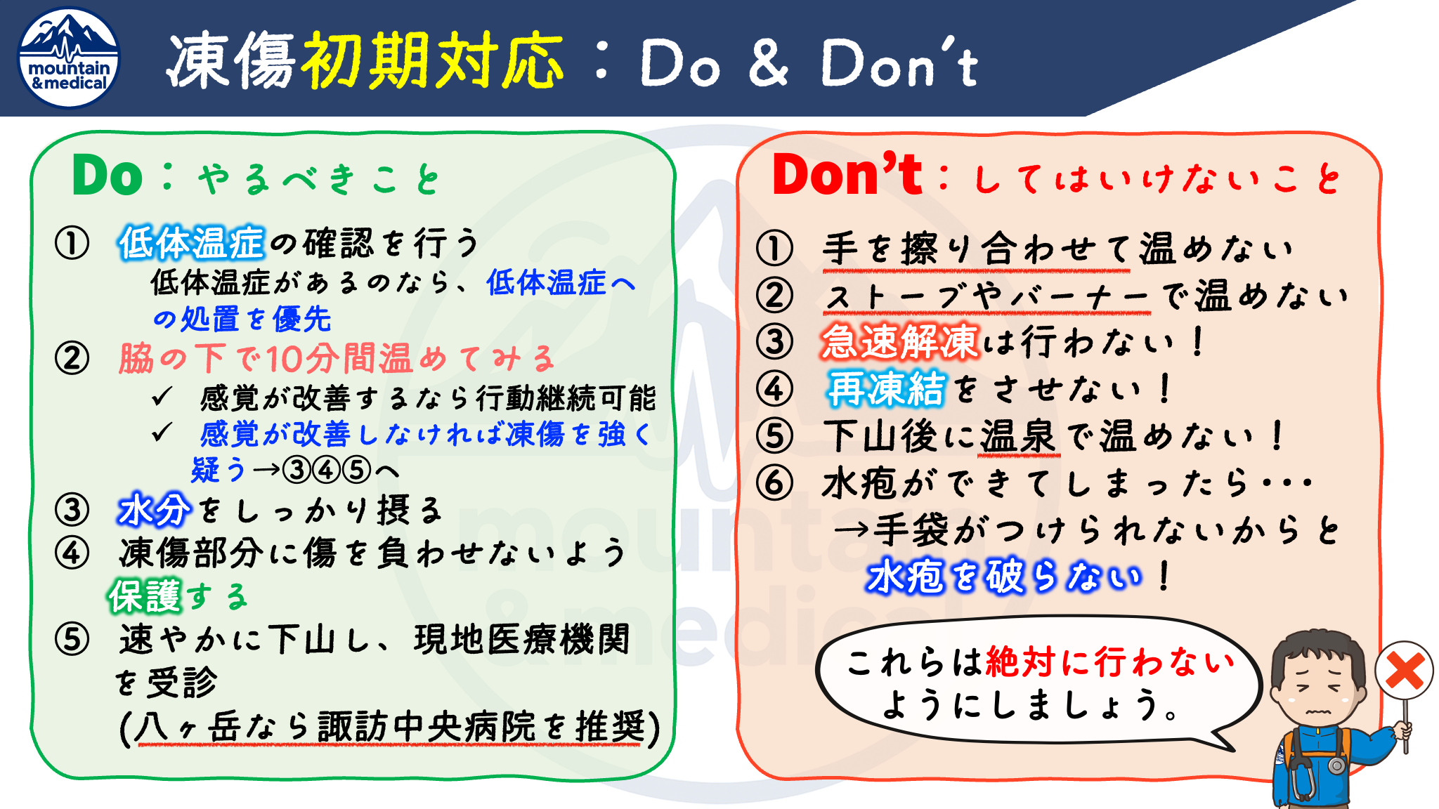 結論:凍傷初期対応Do & Don’t