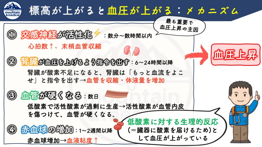 なぜ高所で血圧が上がるのか ― 4つのメカニズム