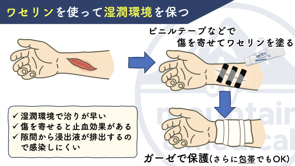 のであれば、直接創部にワセリンを塗って、ガーゼ保護するだけで十分です。